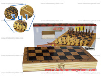 SAH 3U1 Materijal proizvoda: drvo Boja: Transportno pakovanje: 1 / 1 Min pakovanje: 1 Opis pakovanja:41x21x4.5cm Opis proizvoda: drvena tabla 39x39cm, tri igre, sah, checkers i backgammon Sifra: 43223 Slični proizvodi