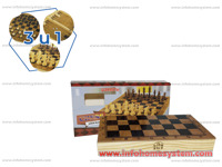 SAH 3U1 Materijal proizvoda: drvo Boja: Transportno pakovanje: 1 / 1 Min pakovanje: 1 Opis pakovanja:30x15.5x4.5cm Opis proizvoda: devena tabla 29x29cm, tri igre, sah, checkers i backgammon Sifra: 58451 Slični proizvodi